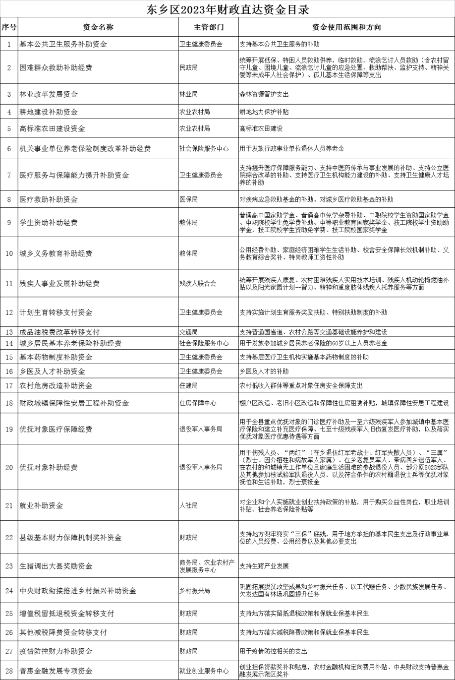 東鄉區2023年財政直達資金目錄