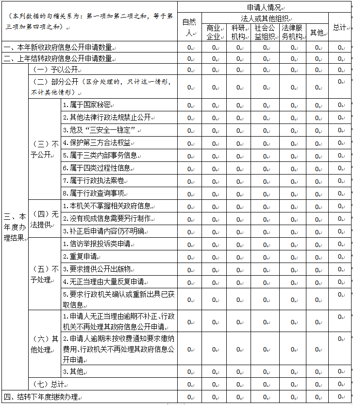 三、收到和處理政府信息公開申請情況