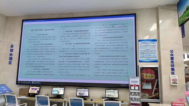 在政務公開專區墻上建設了電子大屏,循環播放群眾較為關心的政策解讀視頻,讓政策活起來。政策解讀視頻對群眾的受教育程度沒有任何要求,只需要用眼睛看、用耳朵聽就能獲取政策信息。
