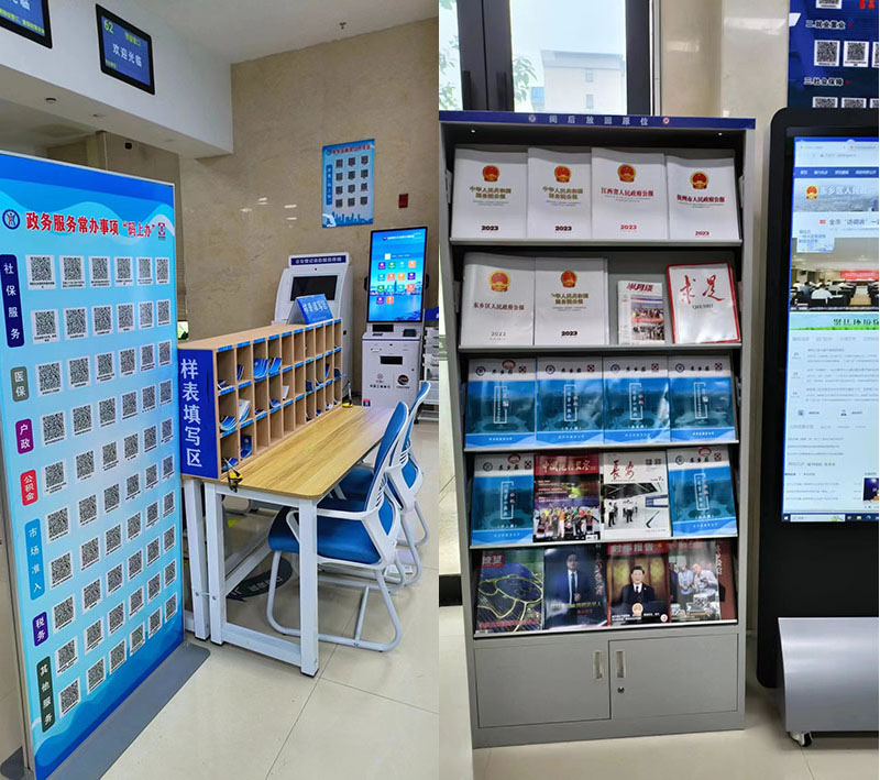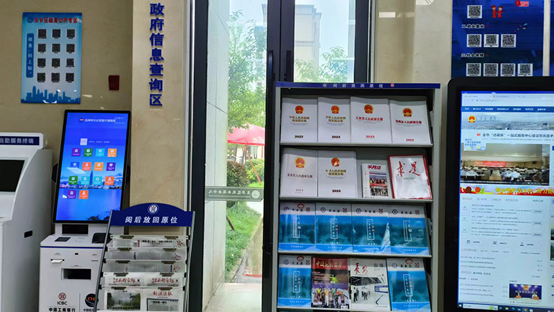 提供政府信息線上、線下查詢服務。線上提供4臺電腦和1臺查詢機等信息化設備,線下集中擺放了政府公報、求是雜志等各類政務公開相關紙質材料,印制了政務服務辦事指南匯編,方便群眾現場查詢。
