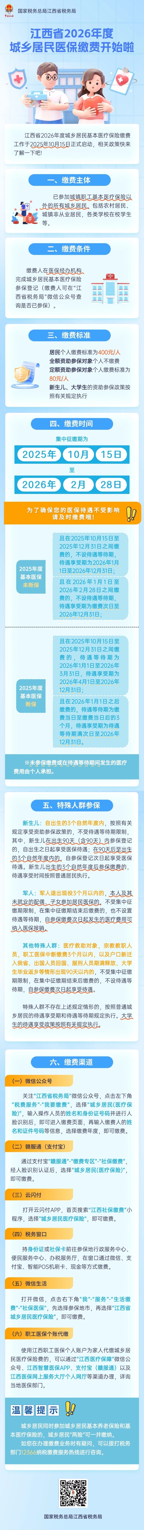 江西省2026年度城鄉居民醫保繳費圖片解讀