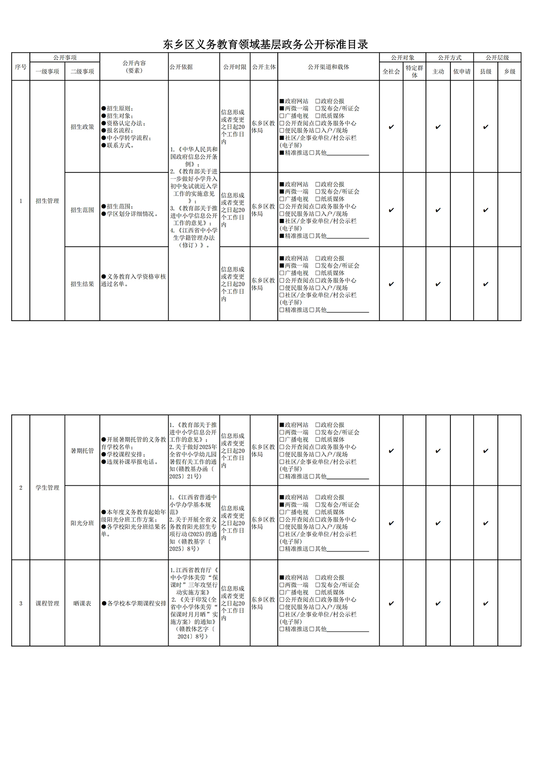 東鄉(xiāng)區(qū)義務(wù)教育領(lǐng)域基層政務(wù)公開標(biāo)準(zhǔn)目錄