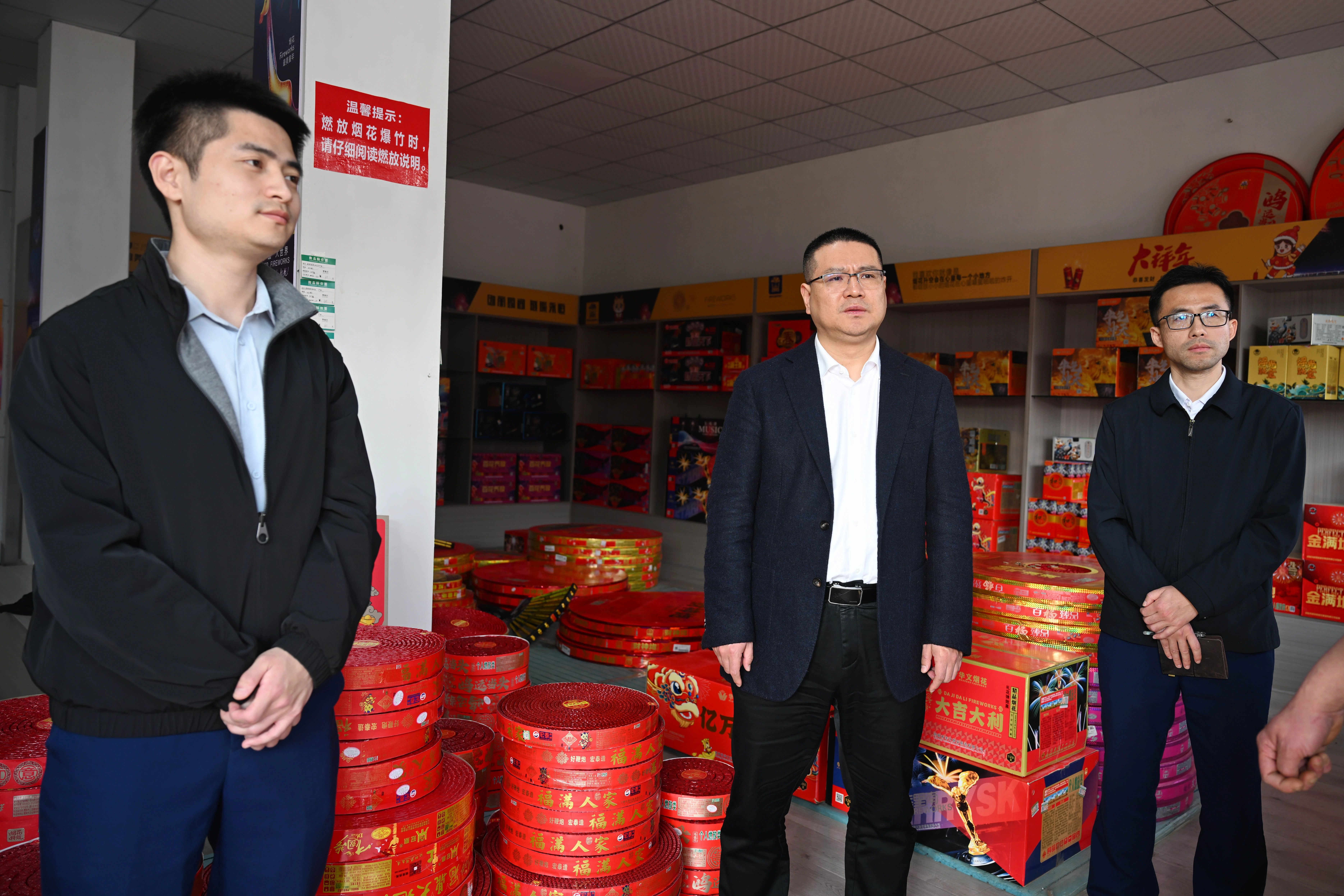 在紅星鎮煙花爆竹零售網點,彭敏群現場檢查商鋪經營資質、消防器材、警示標識、進銷貨臺賬及禁售限放規定執行情況,與經營業主深入交流,叮囑嚴格遵守安全規范,堅決杜絕超量儲存、違規擺放、無證銷售等行為。他要求,相關部門要強化聯合執法與巡查管控,嚴厲打擊非法經營、儲存、運輸煙花爆竹行為,堅決守住煙花爆竹安全底線。